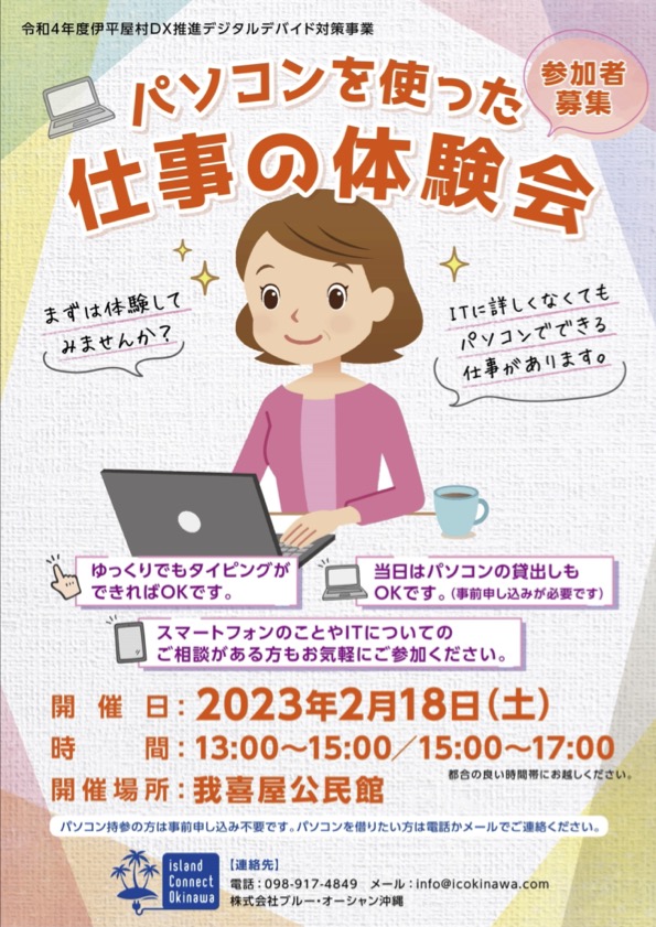 今回、伊平屋島在住の2名の方がテレワーカーとして登録されました。