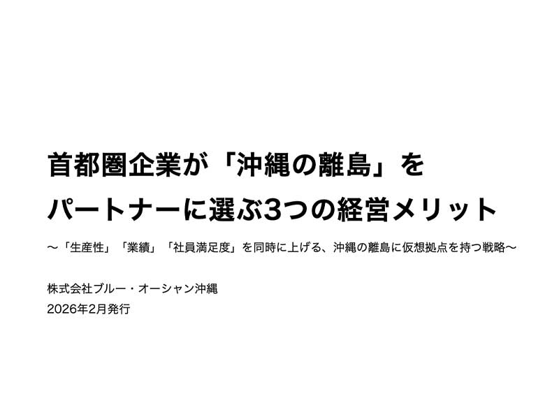 首都圏企業が「沖縄の離島」を パートナーに選ぶ3つの経営メリット(資料ダウンロード) Gallery 首都圏企業が「沖縄の離島」を パートナーに選ぶ3つの経営メリット(資料ダウンロード) DX推進, News, お役立ち資料, アイランドコネクト沖縄, 地方創生/地方活性化 首都圏企業が「沖縄の離島」を パートナーに選ぶ3つの経営メリット(資料ダウンロード) su7nw42026-02-17T10:18:49+09:002026年2月17日| 続きを読む