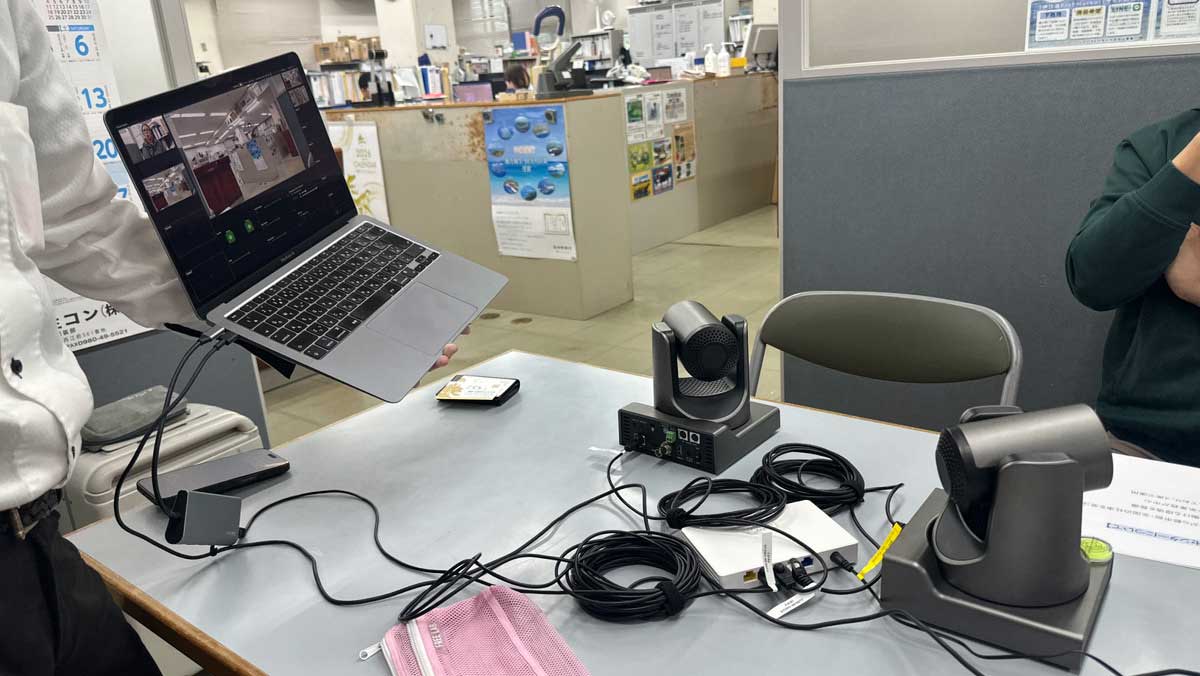 あわせて、本製品を伊江村役場へご提案し、会議等の記録を手軽な設備で実施できる可能性についても意見交換を行いました。今後はこちらのシステムの活用も視野に入れて、伊江島における映像配信サービスの展開を検討していきたいと考えています。